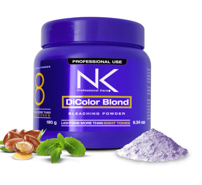 NK Professional Care DiColor blonde bleach powder is formulated to deliver effective hair lightening while helping reduce dryness and structural damage. It targets natural and artificial pigments efficiently, making it suitable for achieving clean blonde results.